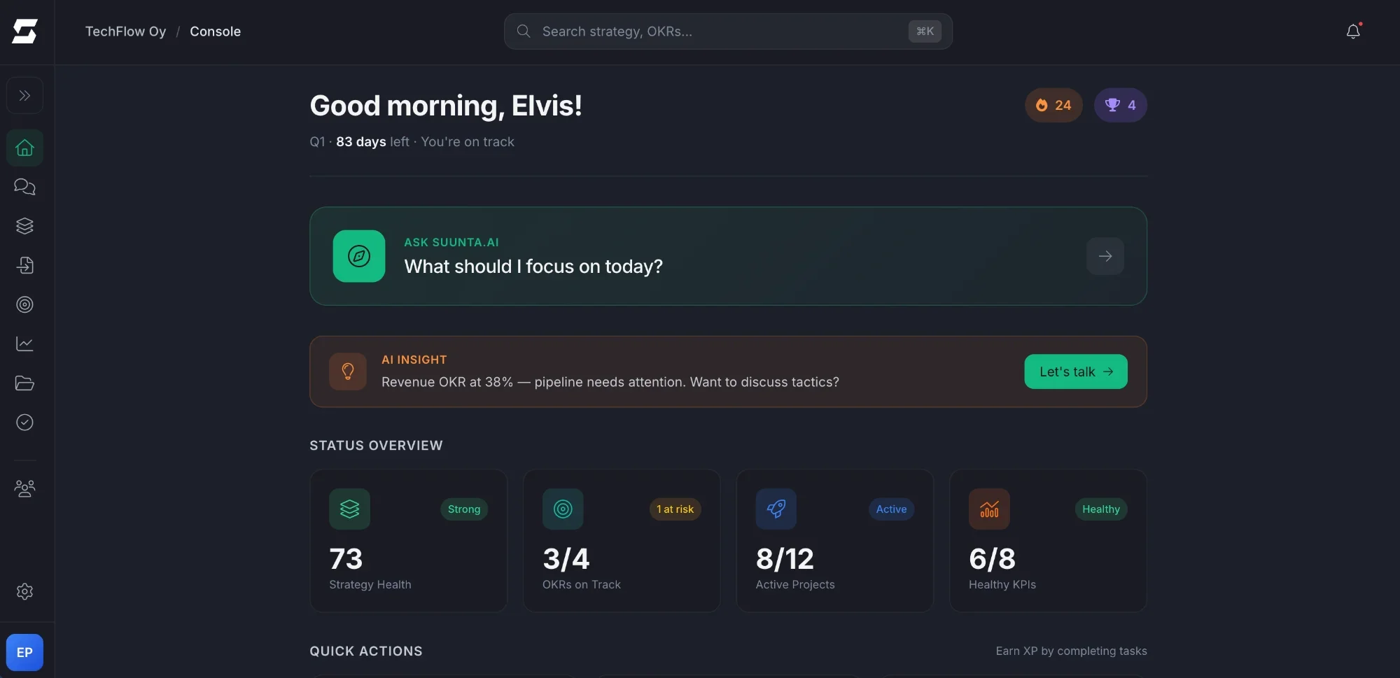 Instant answers across goals, metrics and progress. Context-aware AI that knows your strategy.